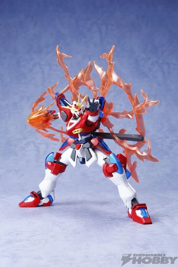 The Kamiki Burning Gundam from Gundam Build Fighters Try is ready for battle! In addition to an array of weapons, Kamiki Burning Gundam features a sword that can be mounted on the rear waist and a flame effect part.